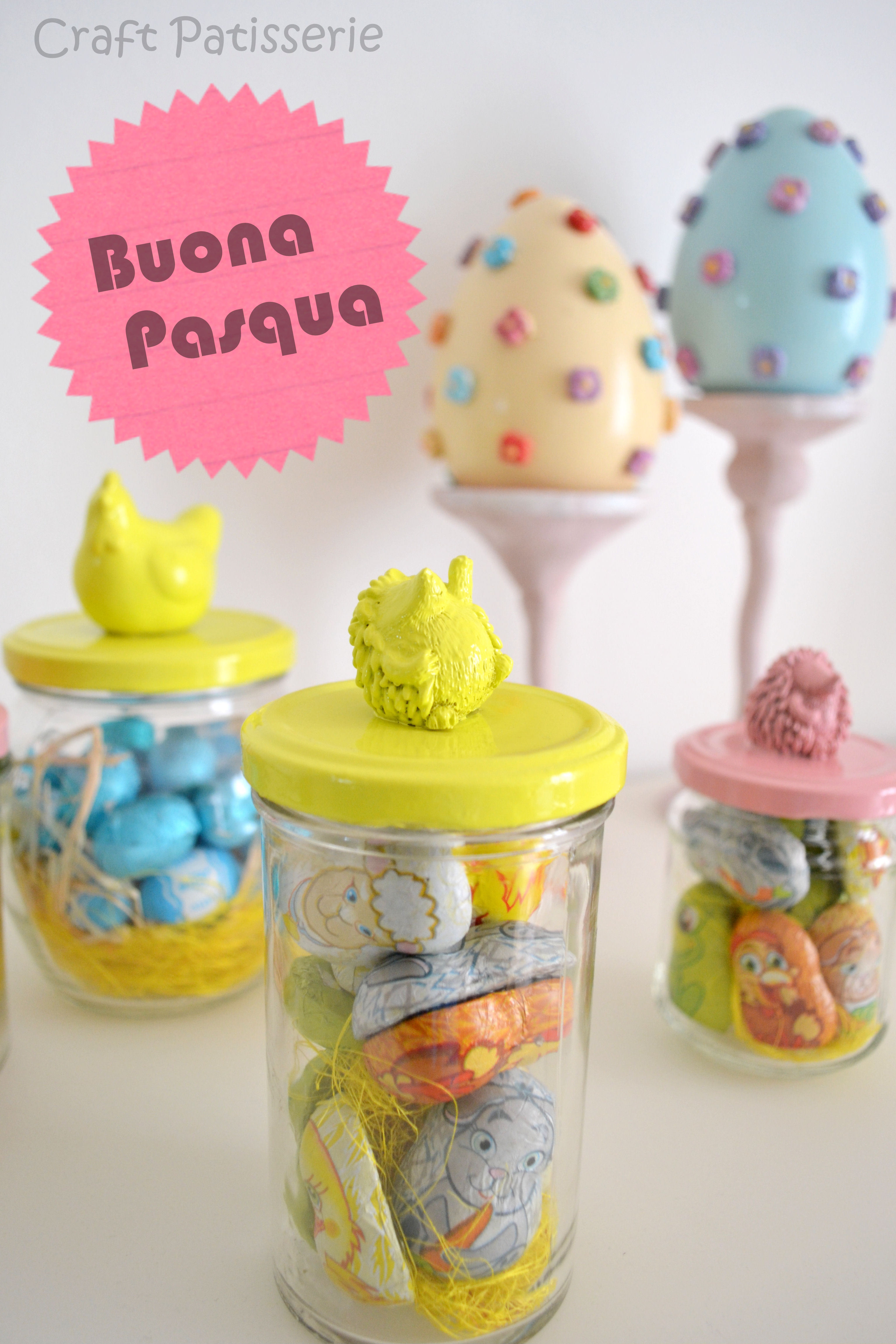 Paste the little toy on the top and after drying paint it … and it’s done! you just have to fill the jars with Easter treats ; hope you enjoy, kiss kiss and Happy Easter