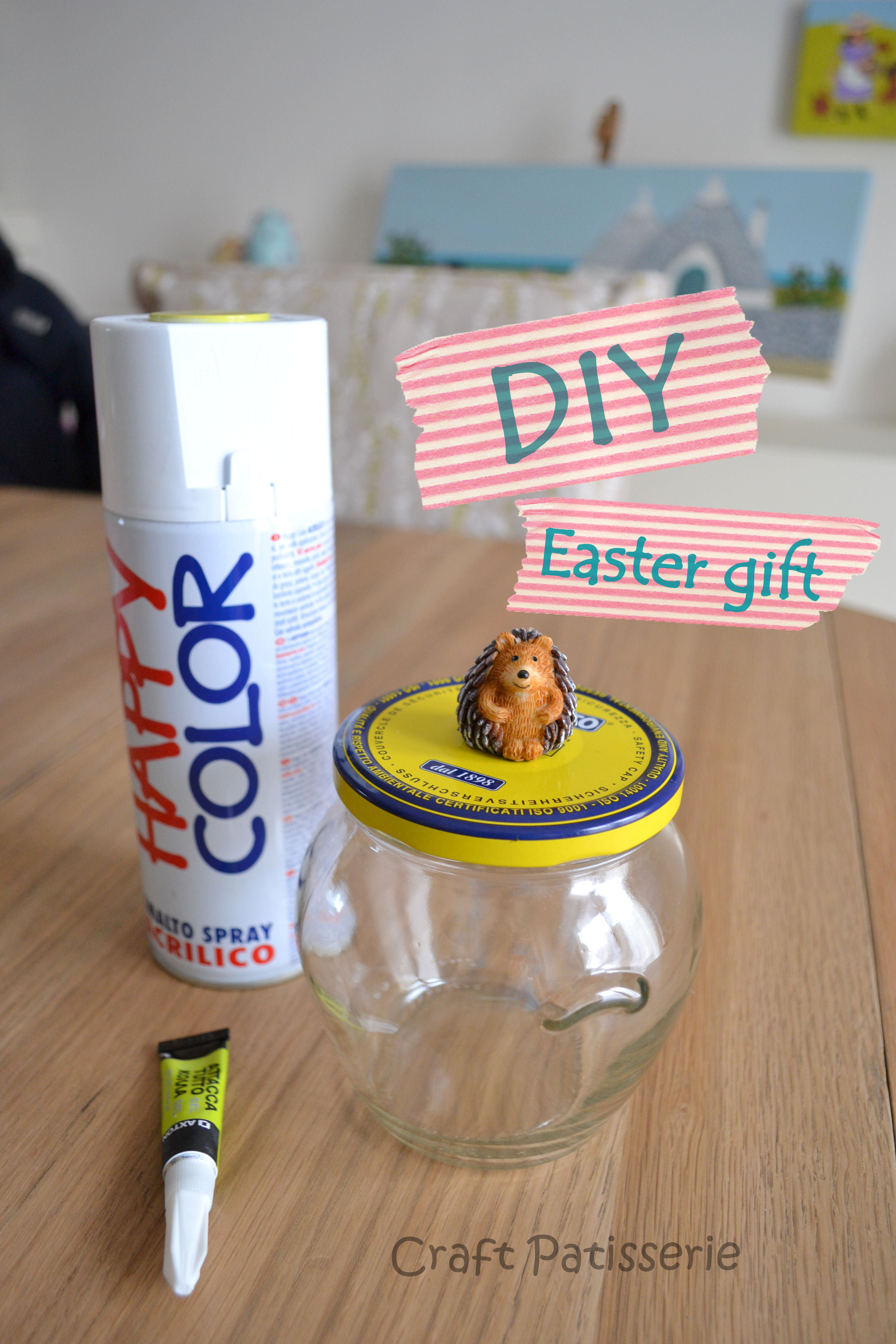 Io ho comprato degli uccellini di terracotta e dei porcospini di resina che erano portachiavi, ma va bene qualunque cosa. Basta incollare il soggetto su un coperchio ben pulito e lasciare asciugare, poi spruzzare con la vernice spray (2 passate dovrebbero essere sufficienti) e … basta! Poi vanno solo riempiti e regalati !!! Spero vi piacciano kiss kiss e buona Pasqua!