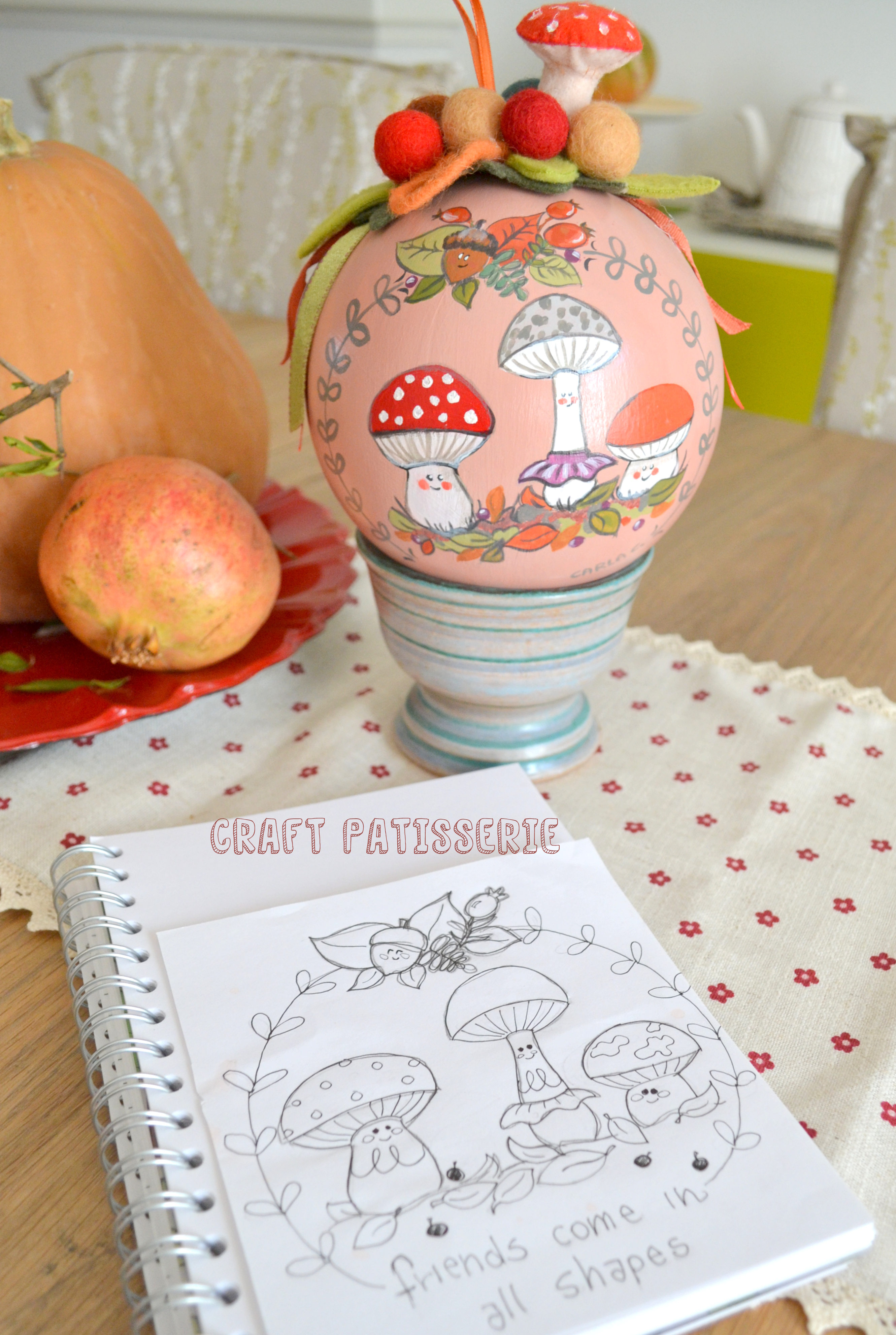 Poi è arrivata una ispirazione creativa: le mani hanno preso il sopravvento e hanno deciso loro! Per prima cosa ho disegnato una illustrazione con tema “fungoso” ovviamente, e con un messaggio di amicizia e tolleranza ;).