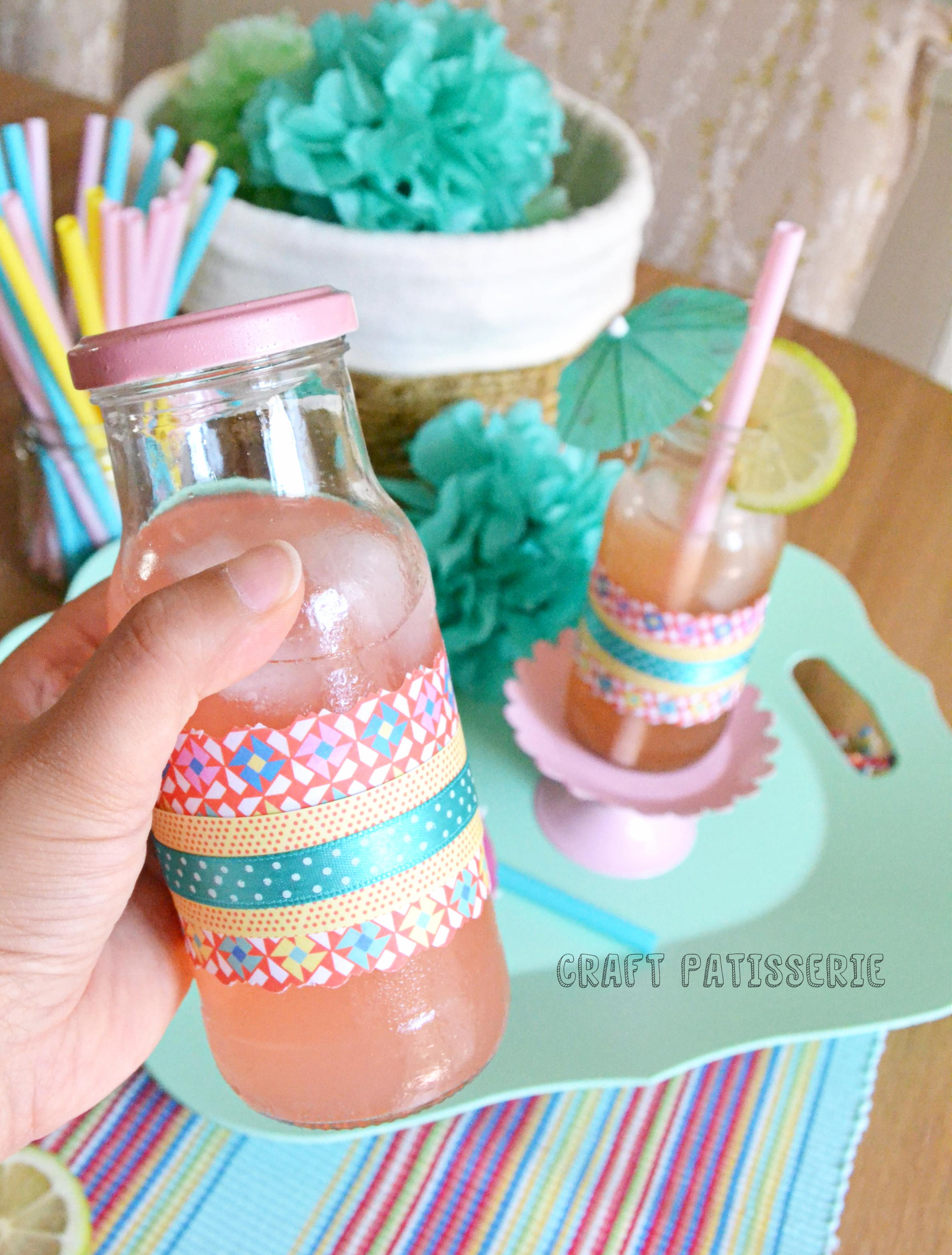 Il formato e la forma dei barattoli è perfetta per un facilissimo riuso creativo. Basta carta colorata, nastrino e voilà. Che credevate? Perché fa caldo e si ha molta sete, ma l’occhio come sempre vuole la sua grossa parte! I tappi poi sono un punto chiave, perché potreste dirmi che bastavano dei bicchieri alti, e invece no.