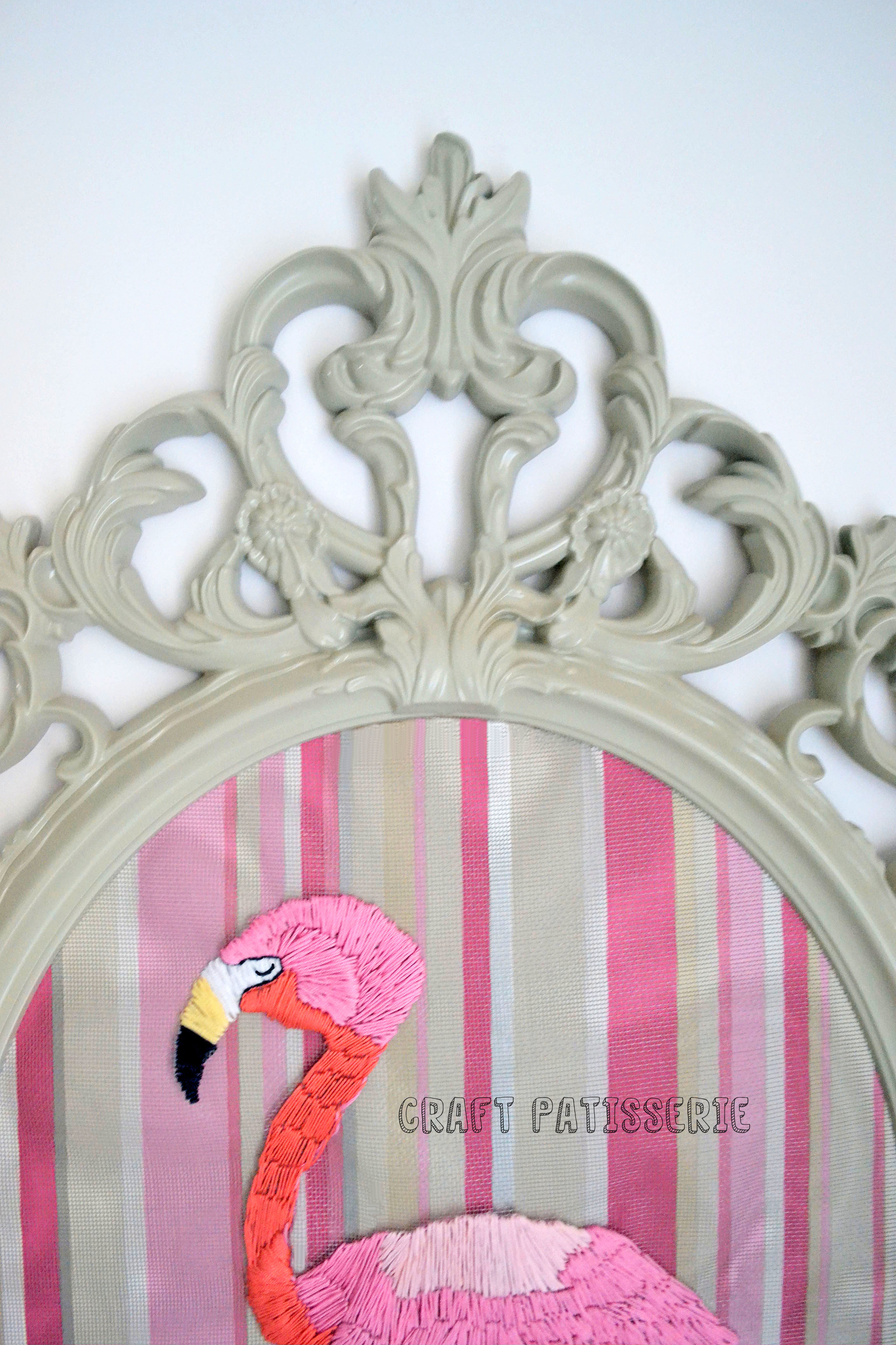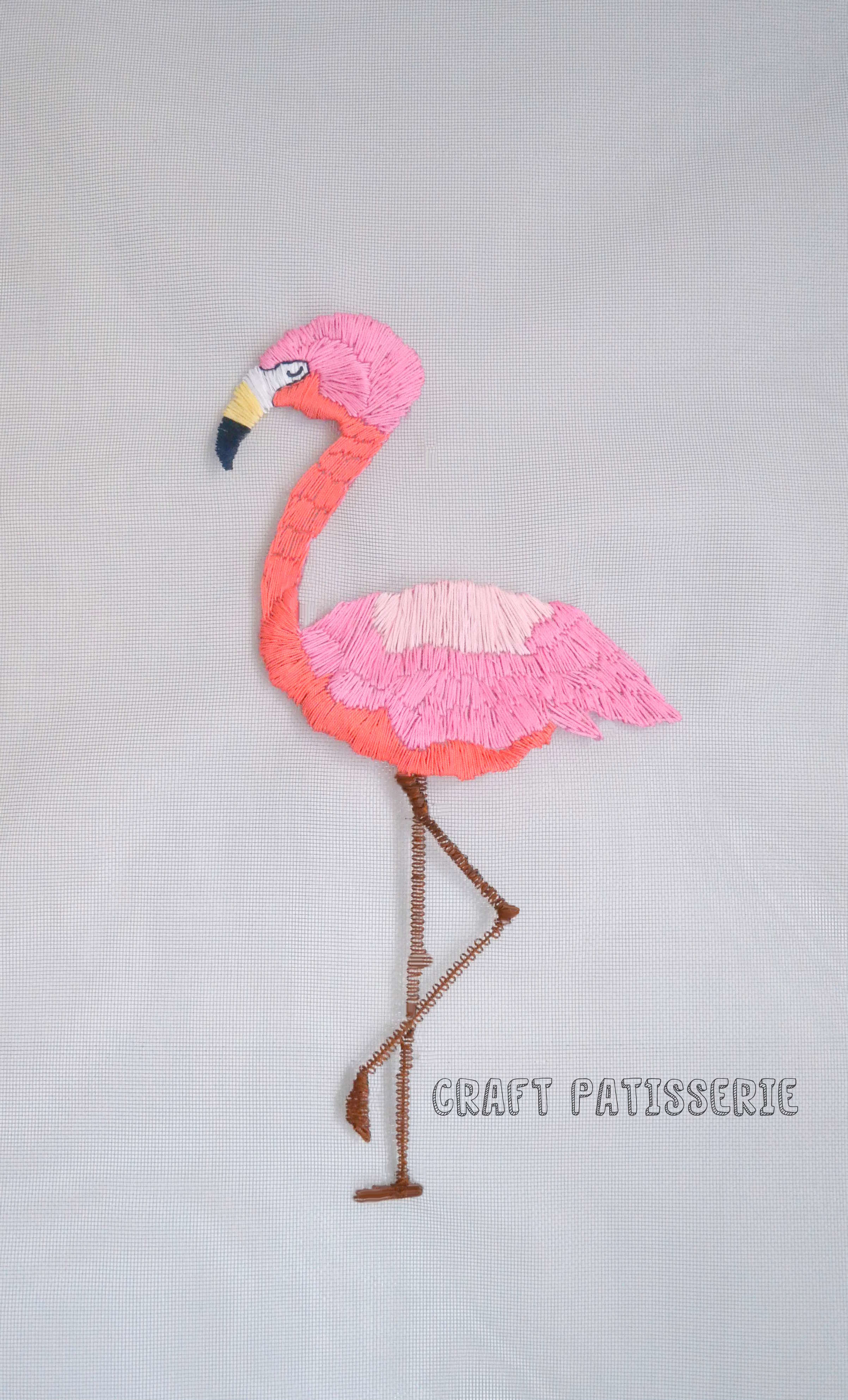 Spero che abbiate gustato il tutorial fotografico e adesso vi mostro il lavoro “grosso” . Ho voluto realizzare un fenicottero sinuoso e piumato e per farlo ho dato fondo alla mia scarsa abilità di ricamatrice generando quello che potrei definire “punto anarchico” (copyright CraftPatisserie 😉 )! Ecco il risultato: my pink flamingo!!