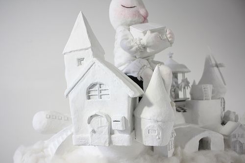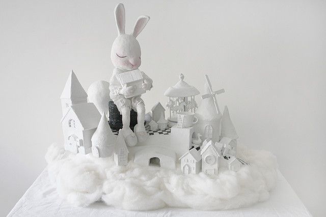 …quest’opera di Baozi Lu ( trovate molto altro qui), candido scenario di una città fatata su una nuvola con tanto di coniglio sognante (c’è anche una tazzina con la sua mini scaletta!).