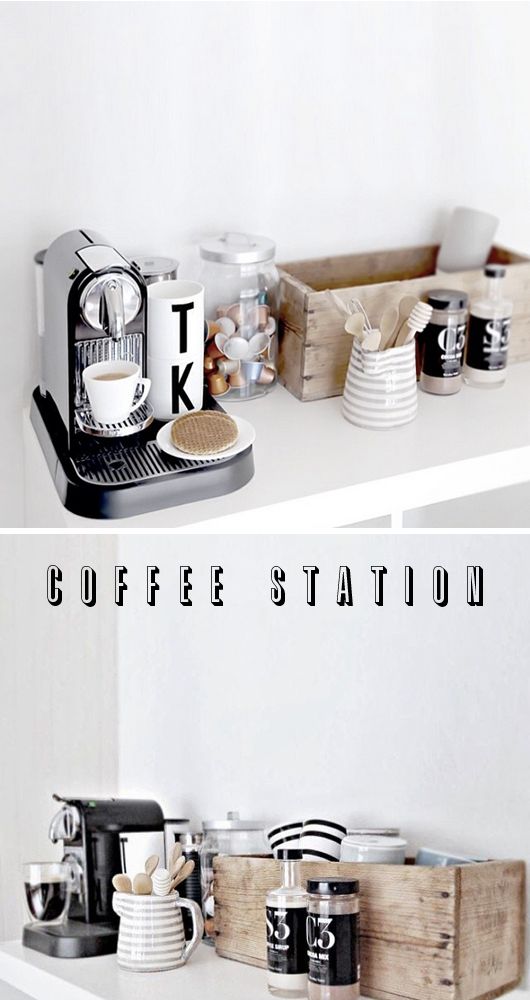 Ti presento qui alcune ispirazioni per creare in cucina un funzionale, oltre che bello, angolo ristoro per il caffè o per il tè. Anche in un piccolo ambiente si può trovare uno spazio per una bella mensola attrezzata, o nelle più felici delle ipotesi una credenza di dimensioni ridotte può fare al caso nostro. Il resto lo fanno i tocchi personali! Vuoi dare un’ occhiata? Si parte!