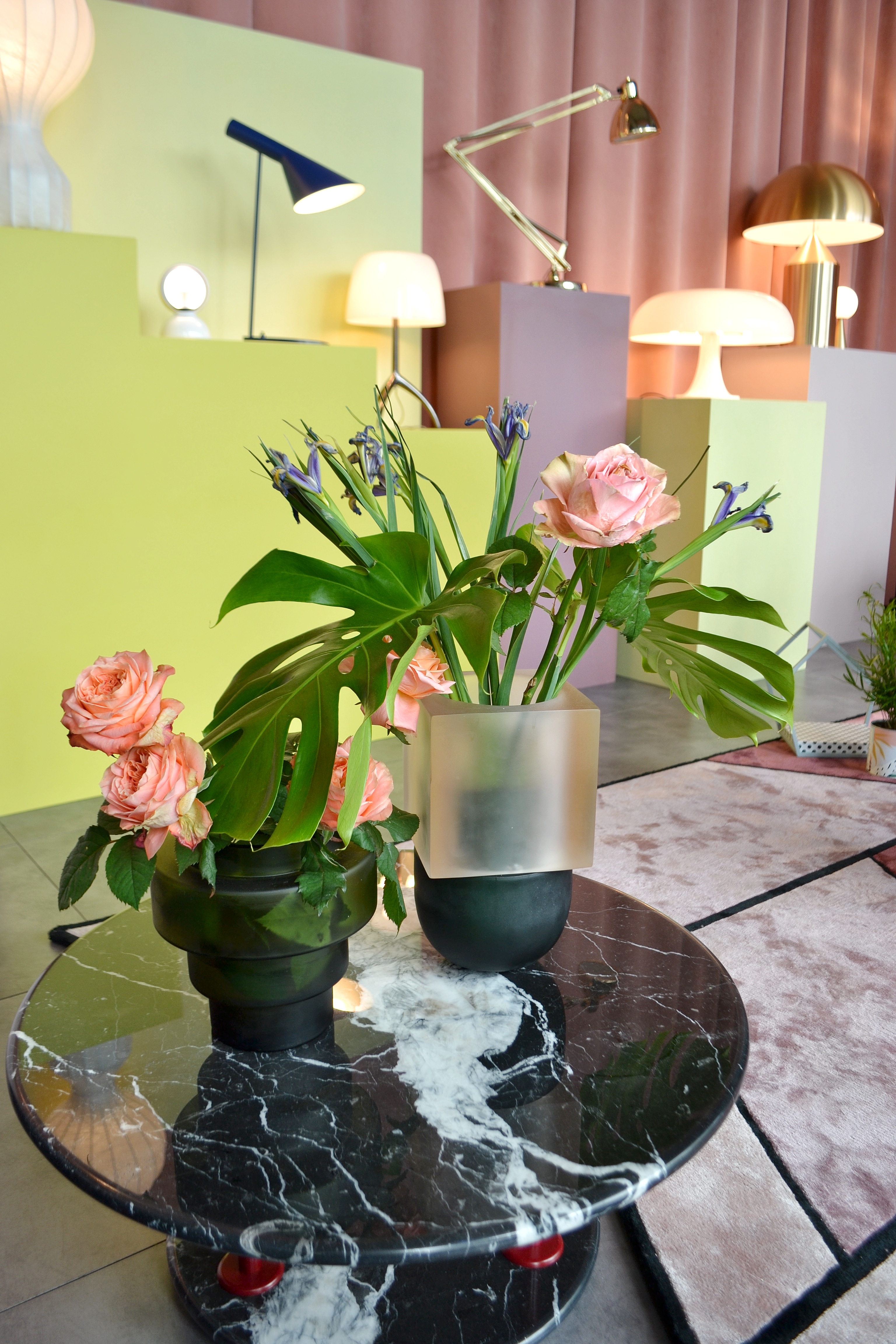 I dettagli bellissimi dei vetri vintage scelti per le porte originali dell’appartamento.