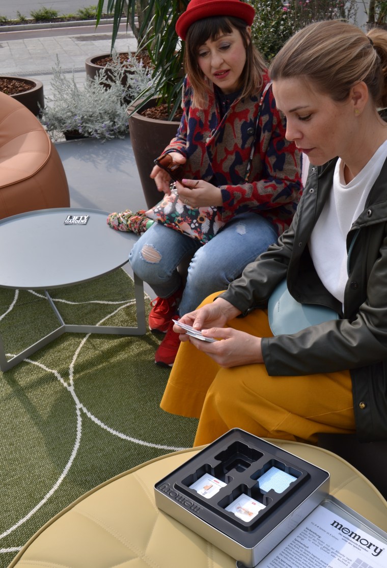 Tra uno scatto e una chiacchiera ci accomodiamo nello spazio esterno dove il verde di Mati 1909, in collaborazione con Orticolario, fa da protagonista (allestimento Lefty Gardens)