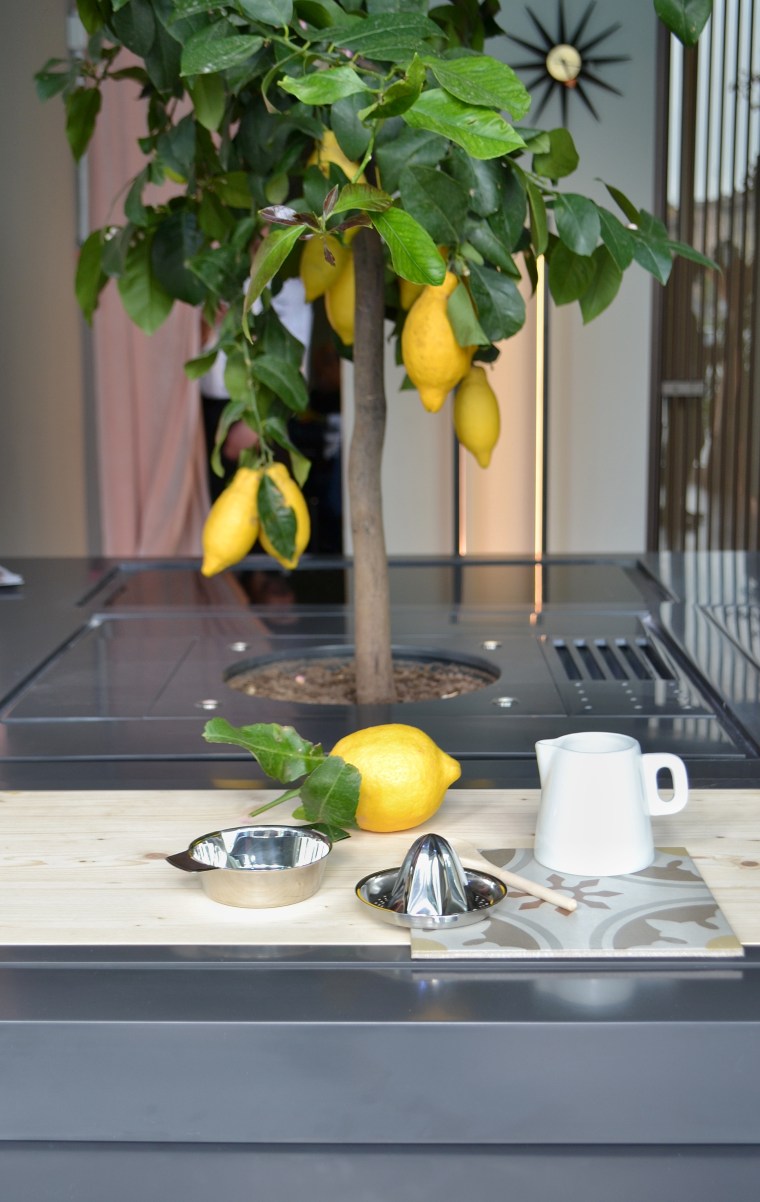 Un irresistibile profumo di pane appena sfornato mi trasporta verso la cucina dove trovo lo chef impegnato intorno ad una splendida isola firmata Aran cucine , attrezzata con elettrodomestici Hotpoint di Ariston e dotata di un inaspettato albero di limoni!