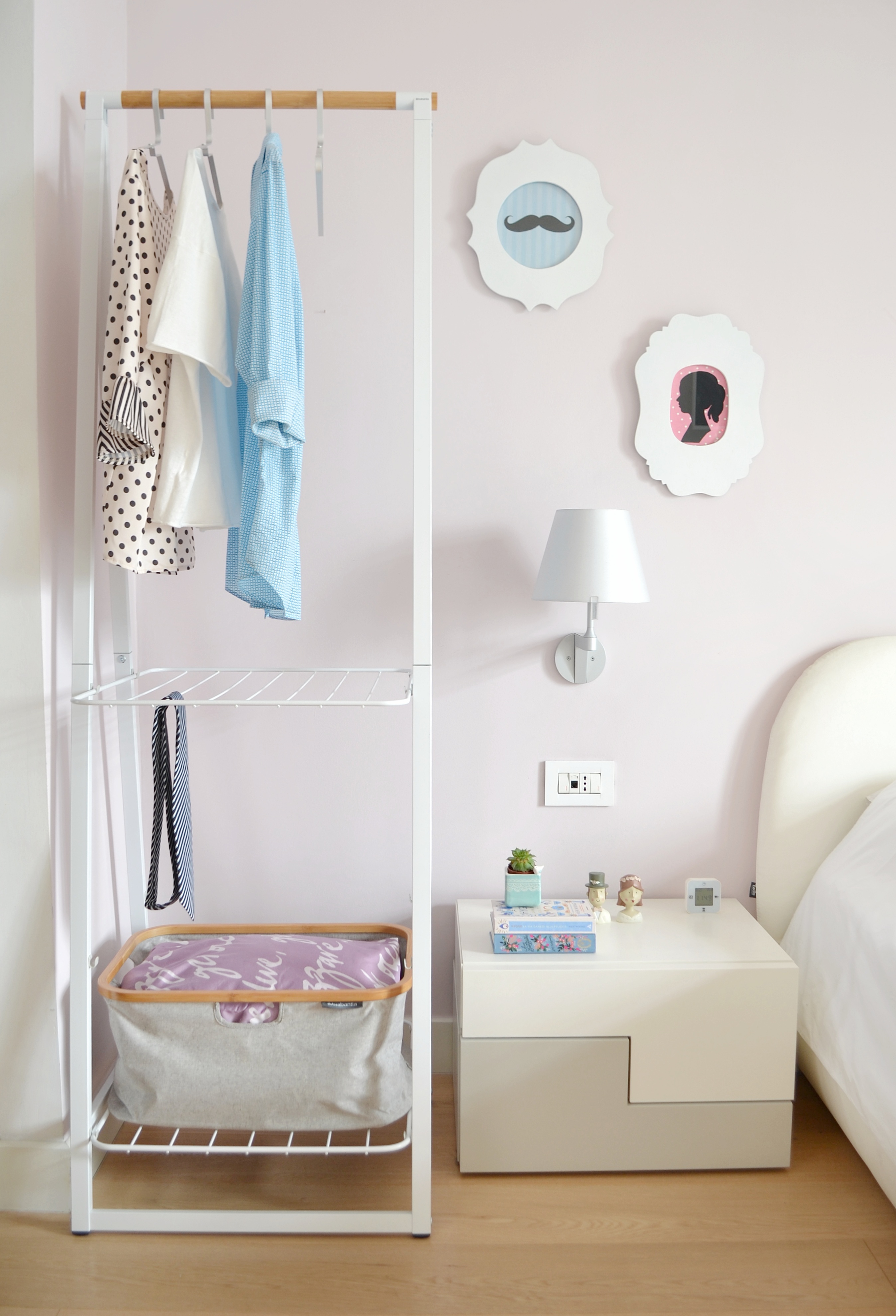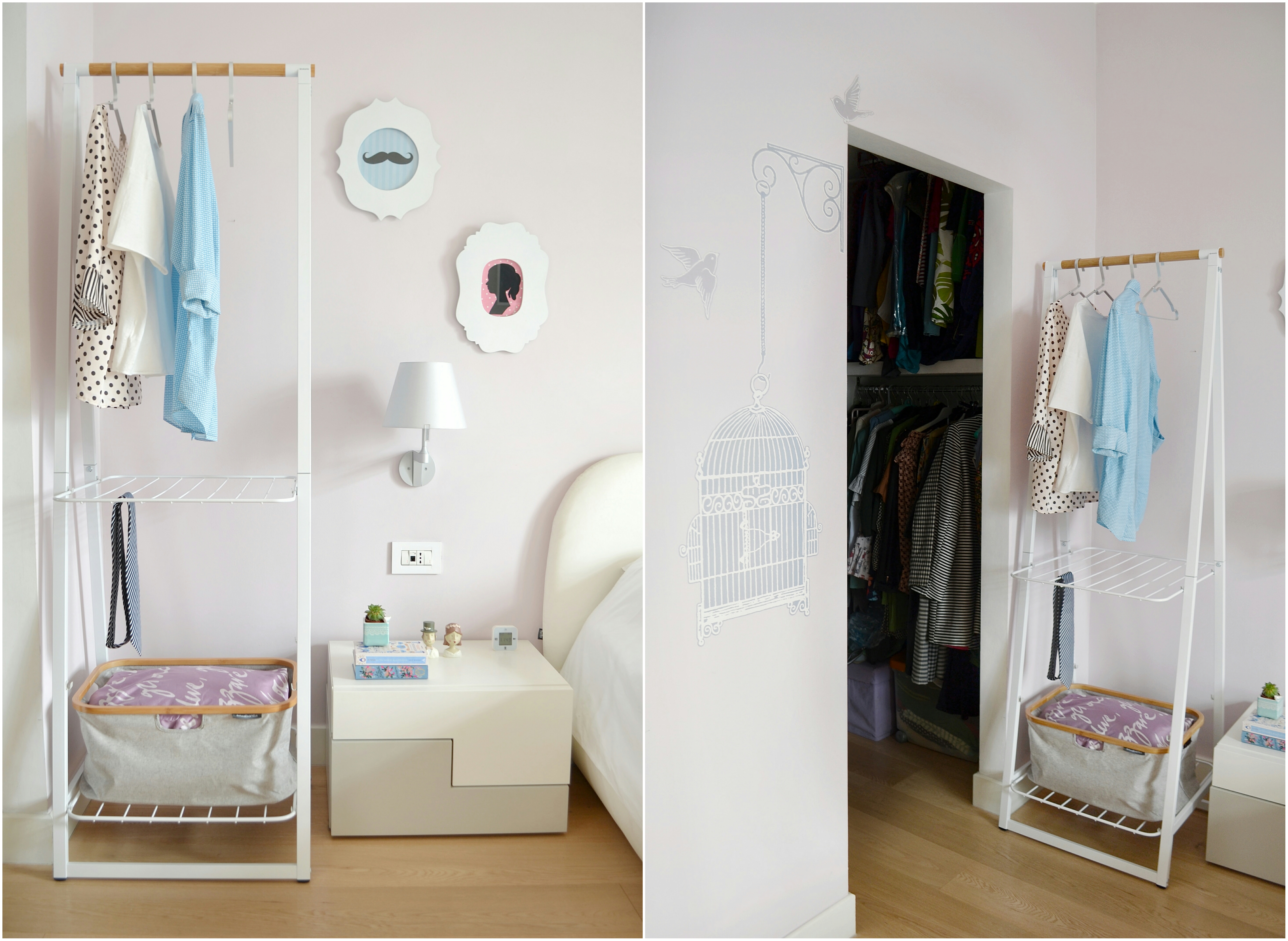 Il montaggio è stato molto semplice e senza bisogno di attrezzi perchè è tutto in dotazione; la mia Linn, in bianco e nella misura piccola, mi ha conquistata sia per la sua preziosa utilità che dalla sua bellezza nordic-style! Per questo, per adesso io e mr V. pensiamo di inserire la Linn in camera da letto per appendere i vestiti che vogliamo indossare il giorno seguente e per riporre il copriletto e i cuscini ‘di troppo’. Per noi al momento è davvero la chicca che fa la differenza. Nulla ci impedisce di cambiare idea e collocare Linn da un’altra parte… Intanto che ne dite del risultatato? Ecco a voi il prima e dopo 👇